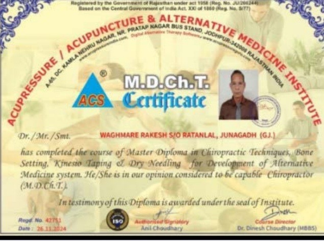 હુ છેલ્લા 14 વર્ષથી કાયરોપ્રેક્ટિક સારવાર ક્ષેત્રમાં સમર્પિત રીતે સેવા આપી રહ્યો છું. આ સમય દરમિયાન મેં 1300થી વધુ દર્દીઓને સફળતાપૂર્વક આરામ અને સ્વસ્થતા અપાવી છે.